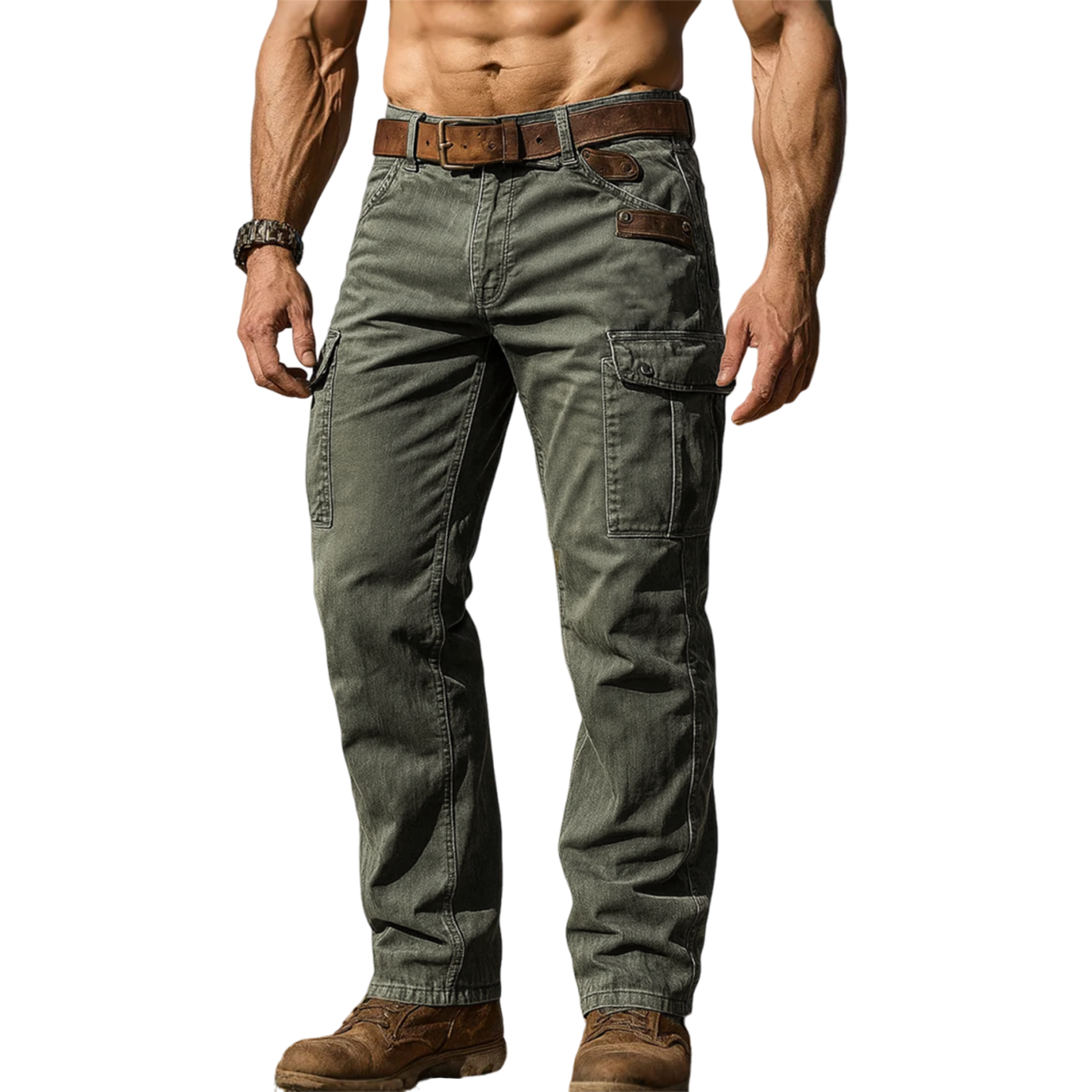 Men's Outdoor Khaki Brown Suede Workwear Cargo Pants