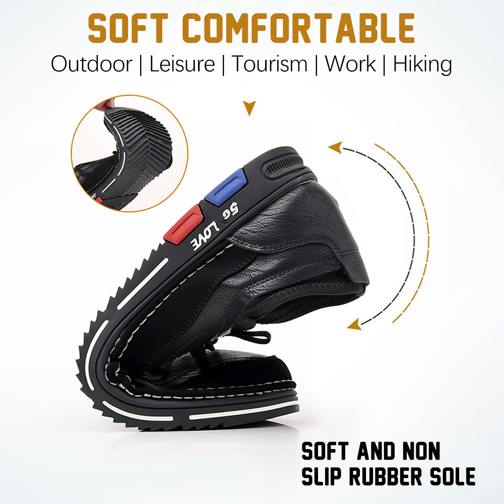 The waterproof cow leather upper makes the casual slip-on shoes lightweight and breathable. The EVA sole provides good cushioning, which absorbs shock while you are walking. The shoes give great support which are suitable for people who need shoes on their feet all day. You can take the shoes as home slippers, work shoes, or travel sneakers.